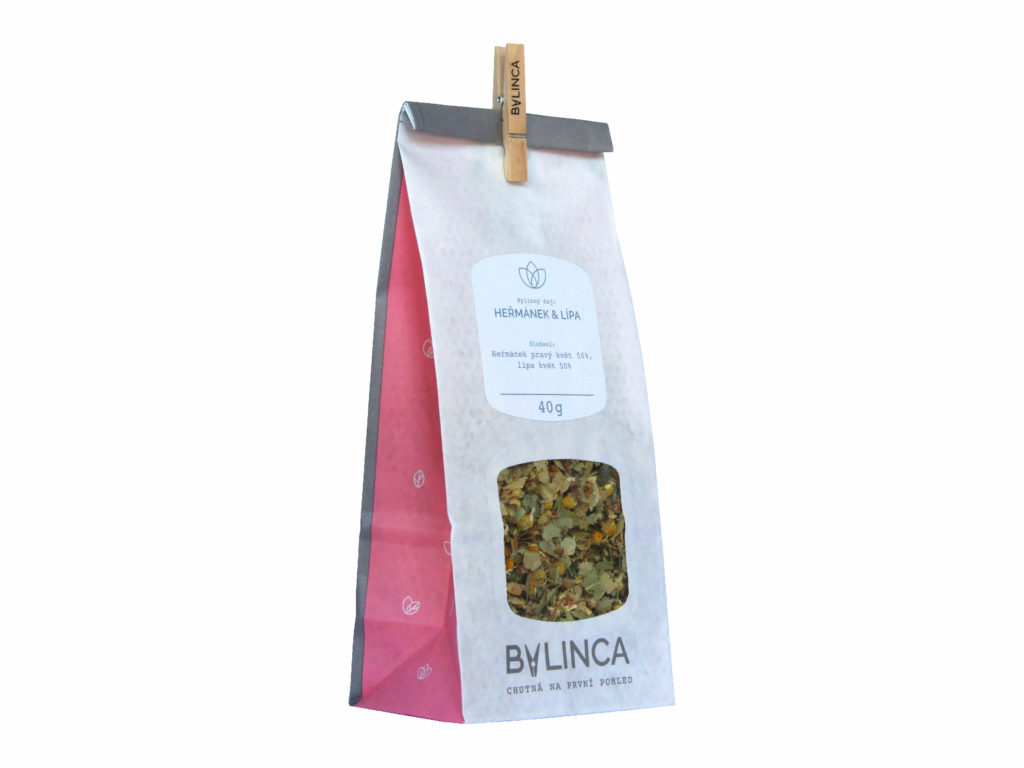 Složení: Heřmánek pravý květ 50%, Lípa květ 50%