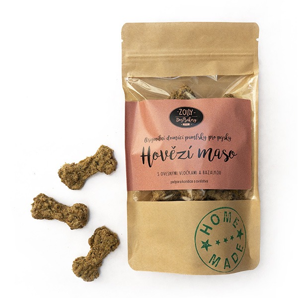 Originální domácí pamlsky pro psy HOVĚZÍ maso s bazalkou 100g