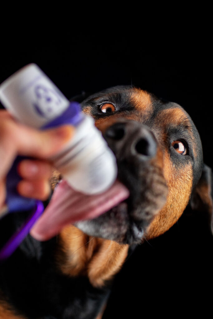 Dodejte na cvičáku pejskovi sílu hovězího vývaru elegantním způsobem! Hovězí smoothie s dalšími dobrotami v tekutém skupenství ve 100% potravinářské kvalitě je ideálním zdrojem tekutin a síly. Doggy roller má na starost perfektní způsob dávkování. Odborníci dodávají, že olizování pejsky uklidňuje a pomáhá jim zklidnit mysl a unavit tělo.