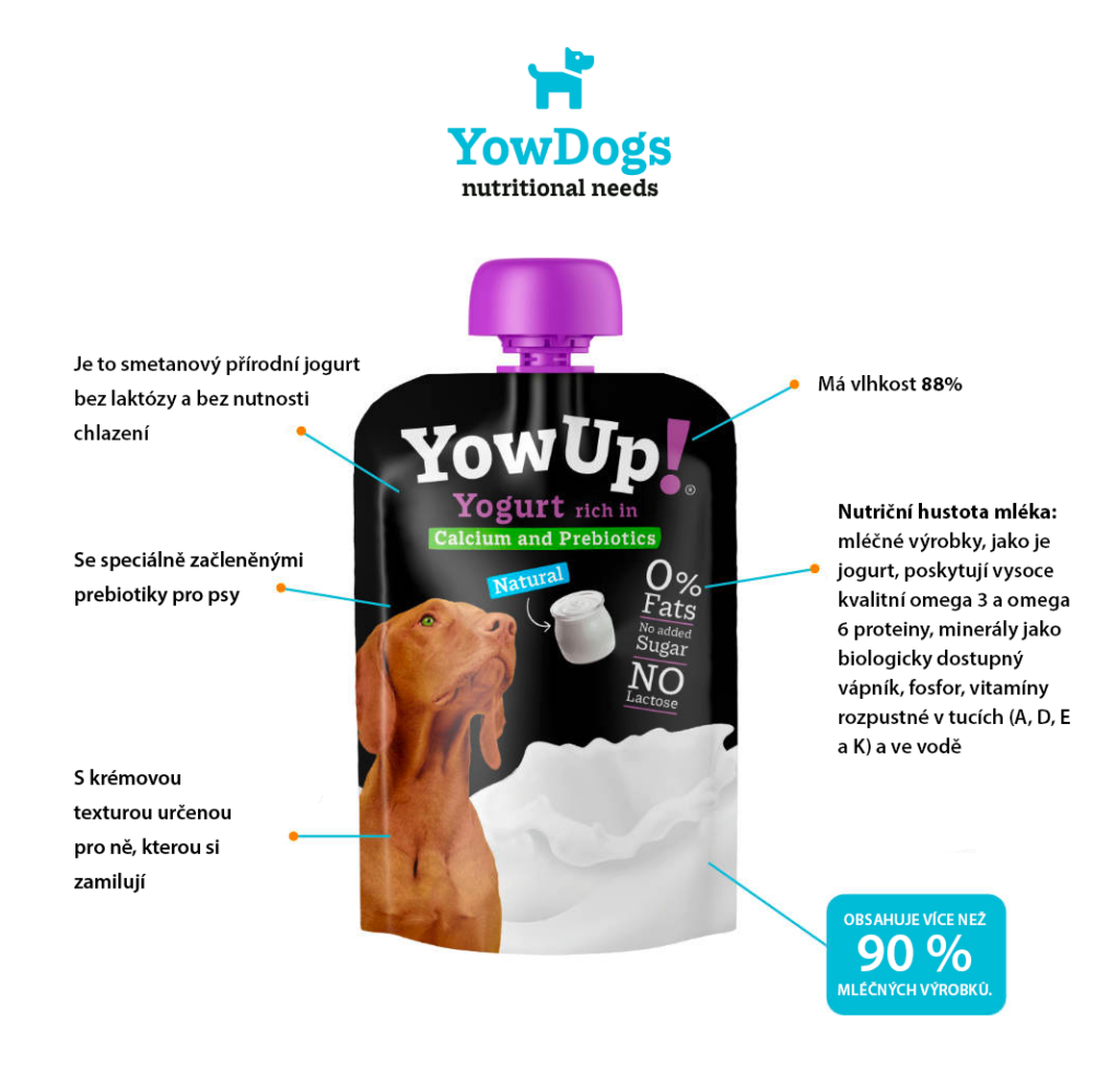 Tady přicházejí na pomoc zdravé doplňky stravy, jako třeba jogurt YowUp! Pokud znáte potřeby svého zvířátka, je dobré jeho zdraví v rozumné míře podporovat. U tohoto produktu je hlavní živinou biologicky dostupný vápník a souhrn vitamínů klíčových pro kůži a chlupy.