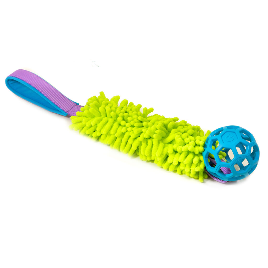 Mop z mikrovlákna s JW Pet Hol-ee - balónkem. Tahací hračka rozvíjí psí touhu hrát si a lovecký instinkt. Výrazně zvyšuje motivaci k práci. Rukojeť je vyložena odolným a snadno čistitelným softshellem.