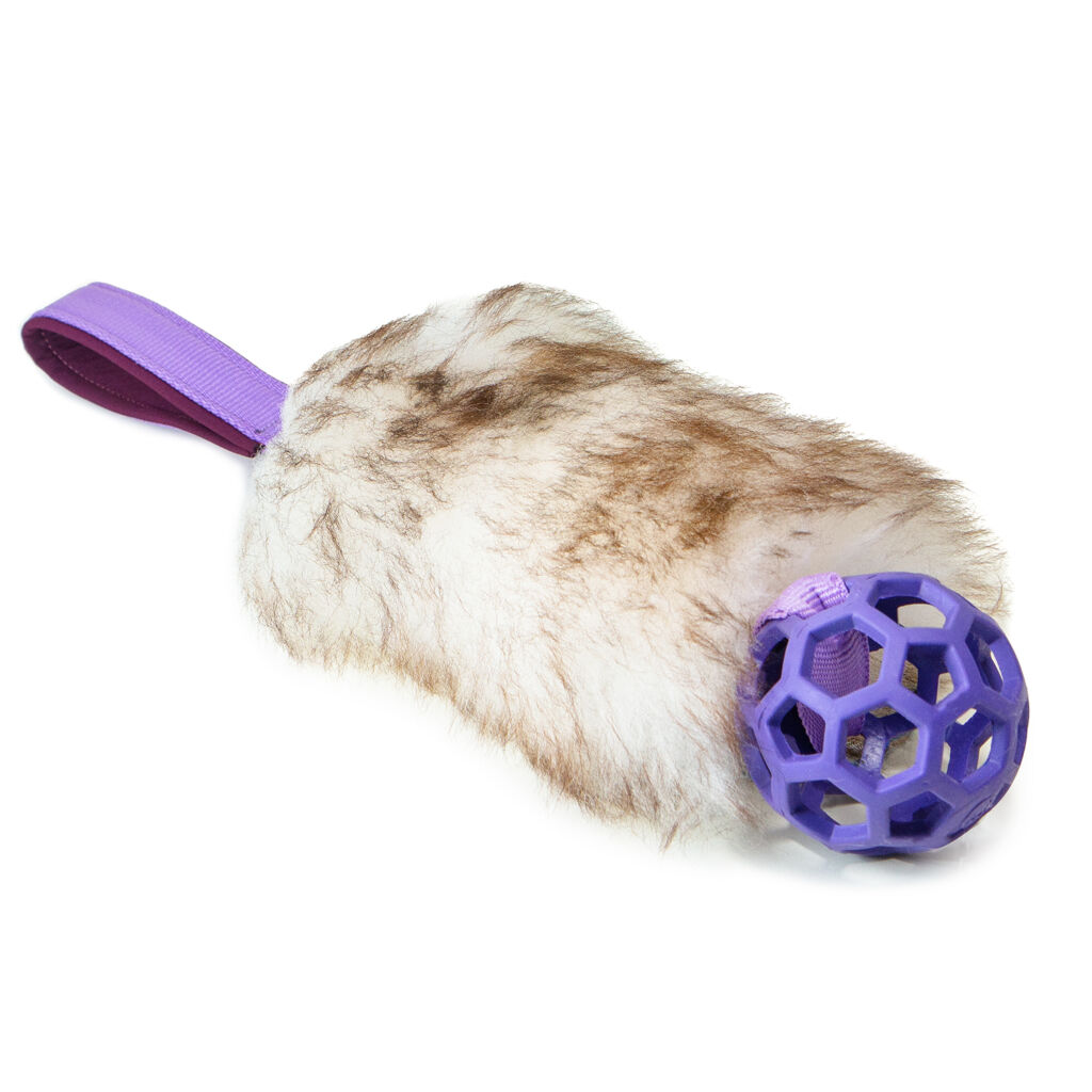 Hračka z ovčí kůže se střední kožešinou a JW Pet Hol-ee - balónkem. Tahací hračka rozvíjí psí touhu hrát si a lovecký instinkt. Výrazně zvyšuje motivaci k práci. Rukojeť je vyložena odolným a snadno čistitelným softshellem.