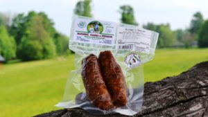 Domácí klobása vyráběná z vepřového a hovězího masa, kořeněna česnekem a pepřem od místního dodavatele „Davídkovo koření“ – koření zcela bez konzervantů a přidané soli – klobásy obsahující 94% masa, příjemná masitá chuť.