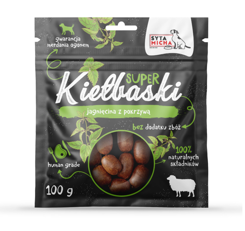 Jehněčí klobásky pro psy jsou sušené pochoutky v podobě malých pamlsků s jedinečnou chutí a lákavou vůní. Díky tvaru podobnému lidským klobáskám se dobře porcují, navíc v nich najdete společně s masem i zdraví velmi prospěšné kopřivy.