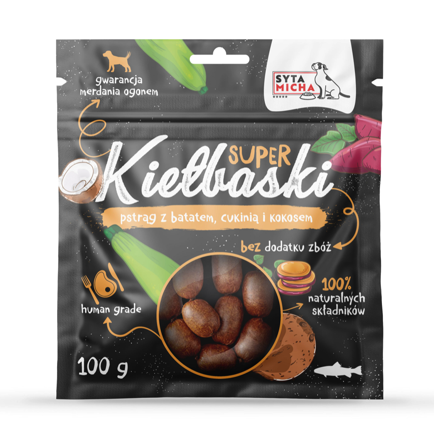 Křupavé svačinky jako nikdy předtím, skládající se z 95 % čistého pstruhového svalového masa a superpotravin – batáty, cuketa a kokos. Neobsahují glycerin, konzervační látky ani jiné umělé přísady.