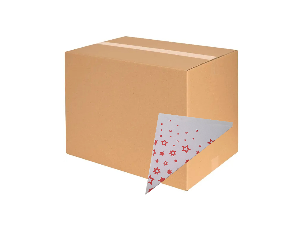 Papírový kornout na popcorn, vhodný i na další potraviny, jako jsou např. hranolky, rozměry 24,5x24,5x34,5cm, balení 200ks