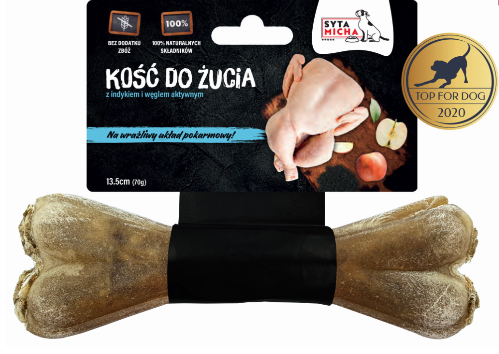 Velikost kosti (13,5 cm) je univerzální , takže žvýkání funkčních kostí od Syty Míchy si užije pes jakékoliv velikosti.