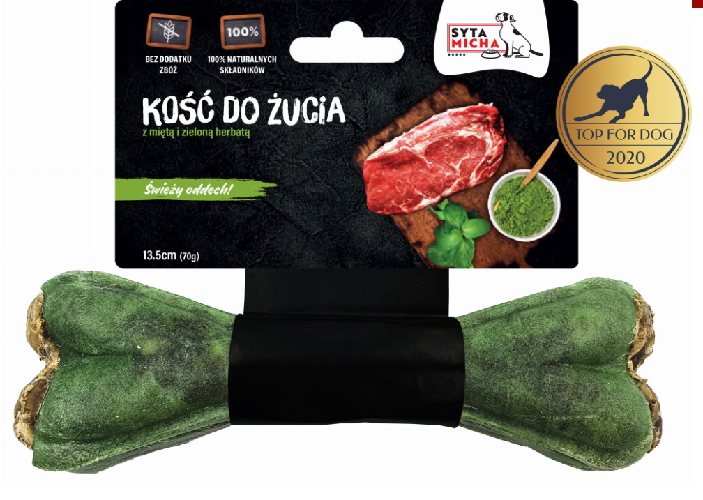 Složení kosti je pečlivě promyšlené, protože plní specifickou funkci. Náplň je navržená tak, aby snížila počet bakterií v tlamičce vašeho miláčka postarala se mu o příjemný dech. Funkční žvýkací kost od značky Syta Micha je vyrobená pouze z přírodních surovin. Ve složení hrají prim hovězí kůže, hovězí maso, chlorofylin, máta a zelený čaj.