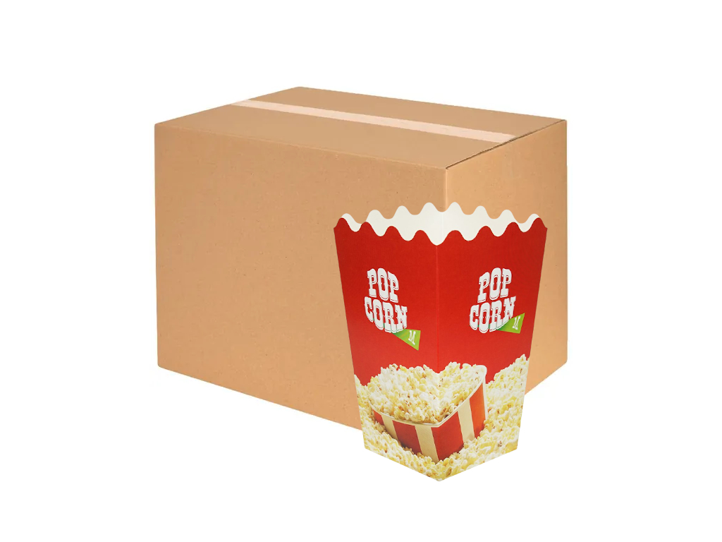 Skládací papírová krabička na hotový popcorn, objem 0,9l, balení 500ks v kartonu