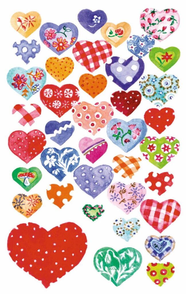 78 ks samolepek v balení, papírové, permanentní lepidlo, motiv srdce. Balení obsahuje 2 stejné aršíky vyobrazených samolepek.