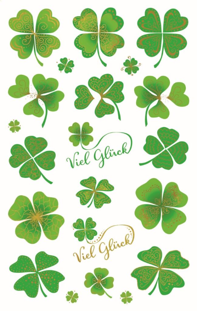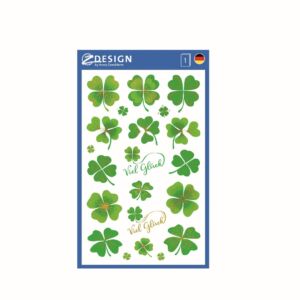 21 ks samolepek v balení, papírové, permanentní lepidlo, motiv čtyřlístky. Balení obsahuje 1 aršík vyobrazených samolepek.