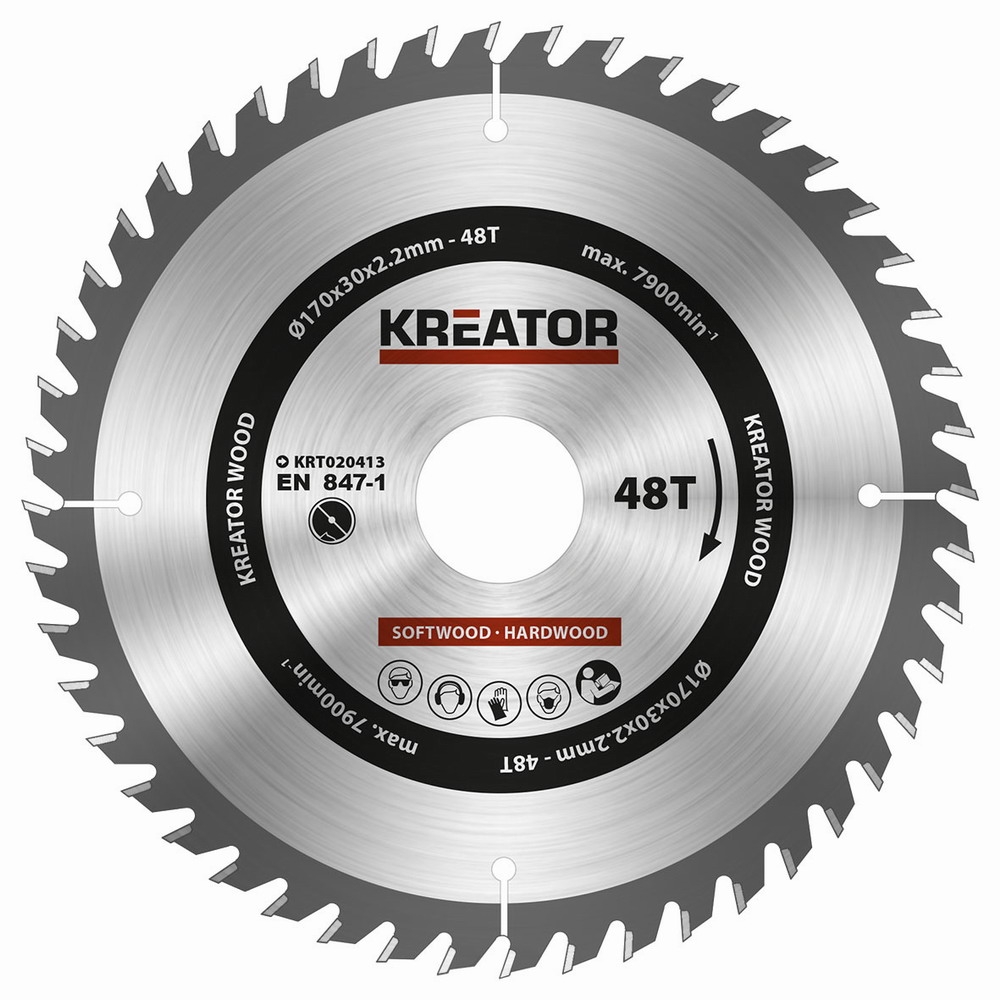 Pilový kotouč na dřevo 170mm, 48T. Tyto pilové kotouče jsou vyrobeny z legované oceli, která zaručuje kombinaci flexibility a tvrdosti. Mimořádně velké kovové zuby zajišťují dlouhou životnost. Ideální pro řezání různých druhů měkkého a tvrdého dřeva., Počet zubů - 48, Rozměr - 170 x 30 x 2,2 mm,...