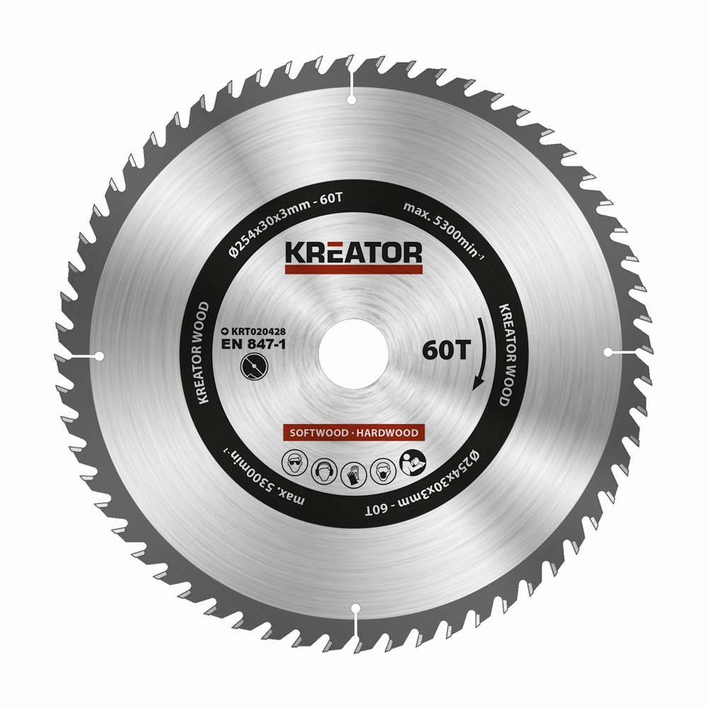 Pilový kotouč na dřevo 254mm, 60T. Tyto pilové kotouče jsou vyrobeny z legované oceli, která zaručuje kombinaci flexibility a tvrdosti. Mimořádně velké kovové zuby zajišťují dlouhou životnost. Ideální pro řezání různých druhů měkkého a tvrdého dřeva., Rozměr - 254 x 30 x 3,0 mm, Počet zubů - 60,...