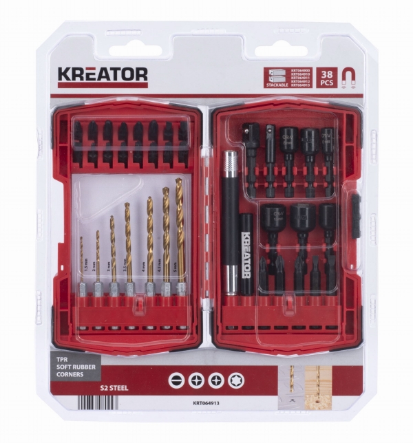 V této 38dílné sadě vrtáků a šroubovacích bitů najdete nepochybně to správné příslušenství pro všechny vaše vrtačky a šroubováky: PH bity, PZ bity, T bity, v různých velikostech, držáky bitů, vrtáky do dřeva a kovu, nástrčné klíče….. Sada je dodávána v praktickém pouzdru s pogumovanými rohy o rozměru 173x113x53 mm.