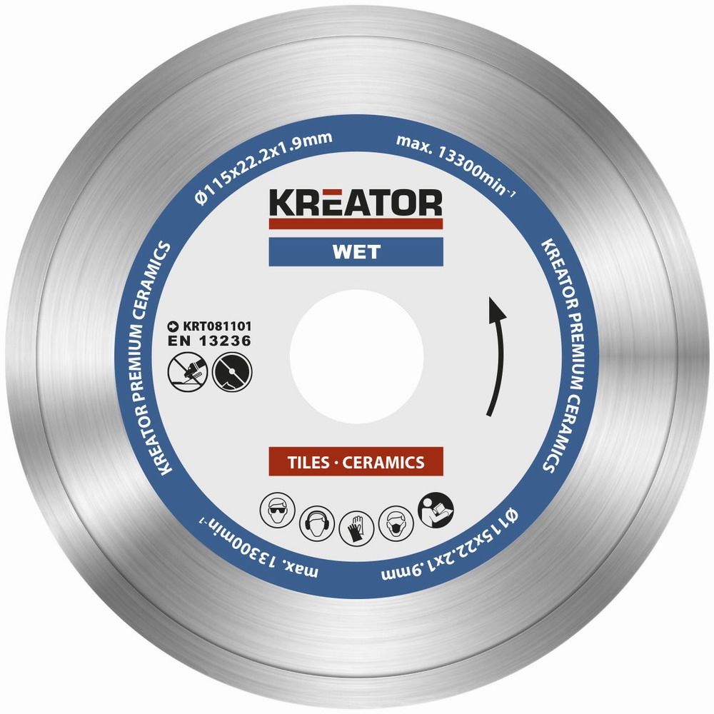 Diamantový kotouč celoobvodový 115mm PREMIUM. Celoobvodový Tyto kotouče poskytují hladký a přesný řez. Ideální pro řezání keramických obkladů, dlažeb, mramoru a porcelánu. Doporučení chladit , Rozměr - 115 x 22,2 x 1,9 mm...