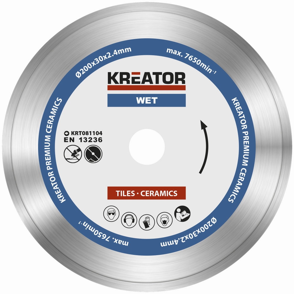 Diamantový kotouč celoobvodový 200mm PREMIUM. Celoobvodový Tyto kotouče poskytují hladký a přesný řez. Ideální pro řezání keramických obkladů, dlažeb, mramoru a porcelánu. Doporučení chladit, Rozměr - 200 x 30 x 2,4 mm...