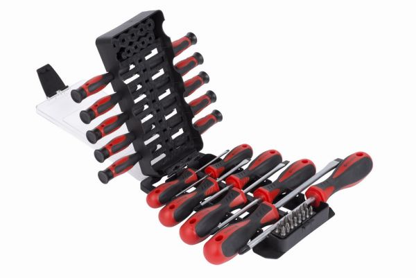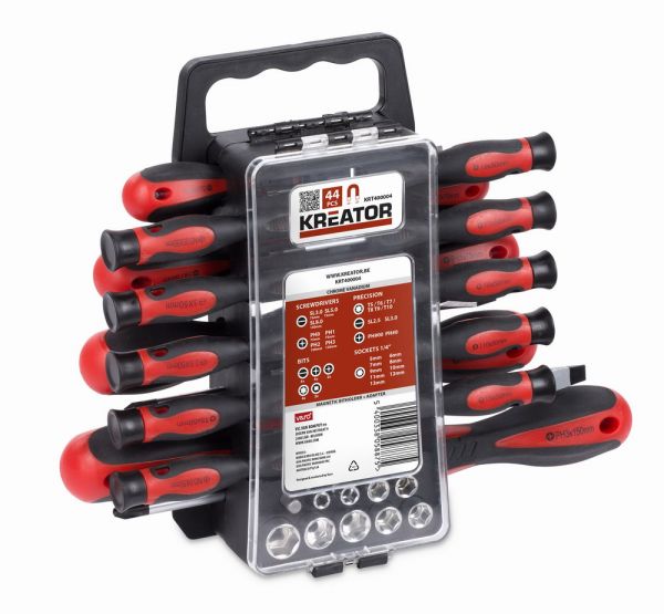 Sada šroubováků a bitů 44ks. Šroubováky: Ploché: SL3.0(75mm), SL5.0(75mm), SL8.0(150mm) Phillips: PH0 (75mm), PH1 (75mm), PH2 (100mm), PH3 (150mm) Precizní šroubováky: Torx: T5, T6, T7, T8, T9, T10 Ploché: SL2.5, SL3.0 Phillips: PH#00,PH#0 Bity: 4x plochý 4x phillips 2x pozidriv 4x...