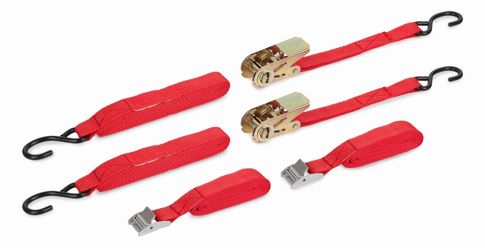 Upínací pás ráčnový a upínacící gumy (sada 8ks). 2x upínací guma: prům. 8mm, délka 40cm 2x upínací guma: prům. 8mm, délka 60cm 2x pás ráčnový: 25 mm x 2,5 m Nosnost: 100 kg Síla v tahu: 200 kg 2x pás ráčnový s hákem: 25mm x 3,5 m Nosnost: 135 kg Síla v tahu: 270 kg Certifikované TUV / GS ...