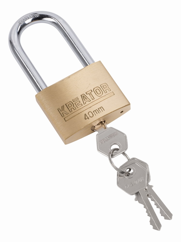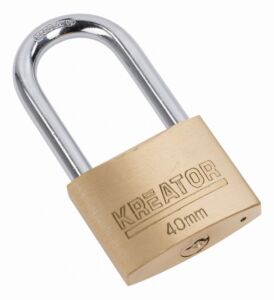 Visací zámek prodloužený 40mm. Materiál mosaz plus ocel 3x klíč, Třmen prům.: - 6 mm, Šířka x výška třmenu(vnitřní): - 21 x 58 mm...