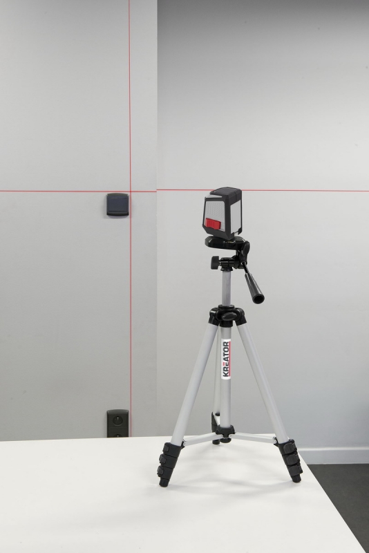 Od této chvíle budete obkládat zeď nebo zavěšovat věci přesně a rovně, protože jste schopni promítat horizontální a vertikální čáry velmi přesně. To je to, co můžete očekávat od tohoto křížového laseru Kreator, který dosahuje až 12 metrů daleko. Samonastavovací křížový laser se vyrovná do šesti sekund s přesností 0,6 mm / metr. Umístěte KRT706300 přímo na stůl, skříň nebo na zem.