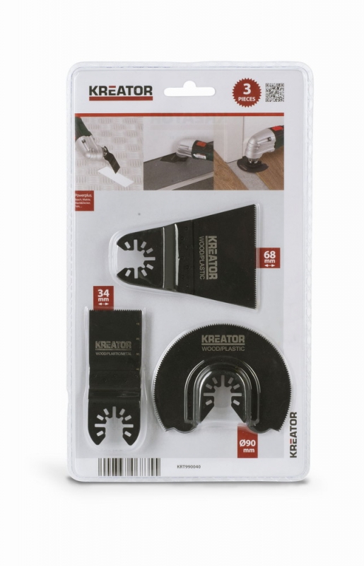 Sada pro multifunkční brusky 3ks. Obsahuje: KRT990011: Řezný nůž 34 mm: dřevo/kov/plast KRT990014: Řezný nůž 68 mm: dřevo/plast KRT990020: Segmentový řezný kotouč 90 mm: dřevo/plast...