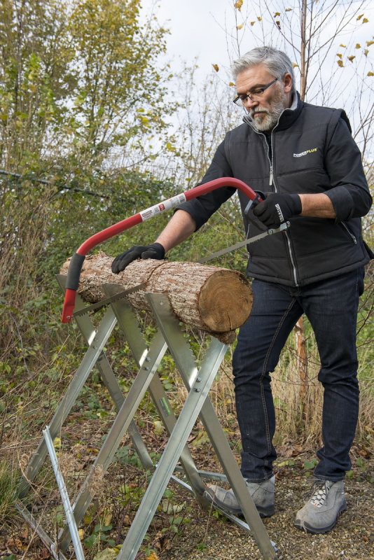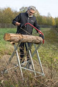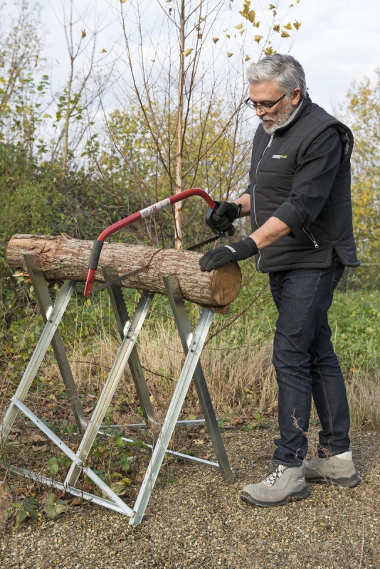 Podpěra na dřevo (koza). , Výška podpěr - 800 mm, Šířka podpěr - 800 mm, Max. průměr polena - prům. 220 mm, Max. nosnost - 150 kg, Materiál - Pozinkovaná ocel...