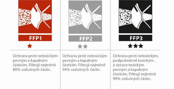 Ochrana proti netoxickým tuhým a kapalným částicím (např. olejové mlhy). Filtrace nejméně 80procent vzdušných částic