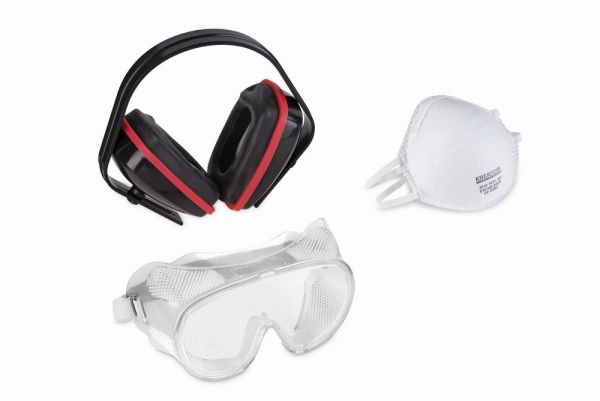 Ochranná sada (sluchátka, brýle, respirátor). Základní ochranaSada pro pro práci s ručním nebo elektrickým nářadí...
