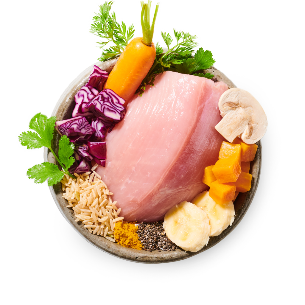 Naše skutečné celé ingredience pocházejí od místních dodavatelů, kteří sdílejí naše hodnoty. Jídla se vaří na objednávku v naší kuchyni schválené veterinární správou jen několik hodin před příjezdem k vašim dveřím.