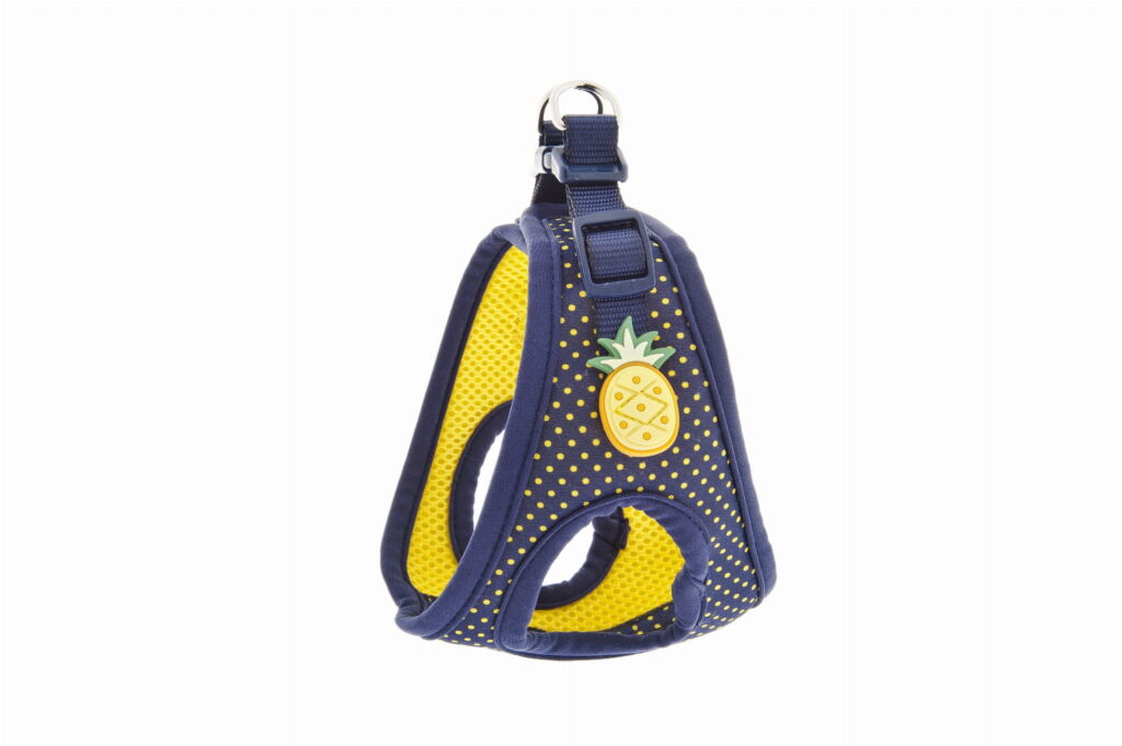 Postroj pro psí milovníky ovoce. Lehký a prodyšný! Velmi snadno se obléká a je nastavitelný pro maximální pohodlí. Zapínání na suchý zip plus bezpečnostní klip s motýlkem na prsou.