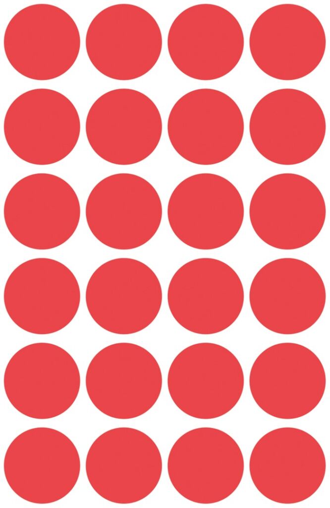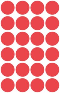 průměr 18 mm, 96 ks etiket v balení, papírové, permanentní lepidlo, barva červená.