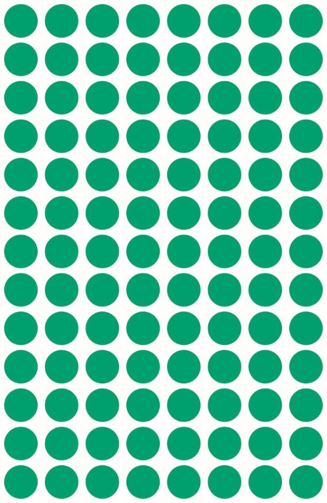 průměr 8 mm, 416 ks etiket v balení, papírové, permanentní lepidlo, barva zelená.