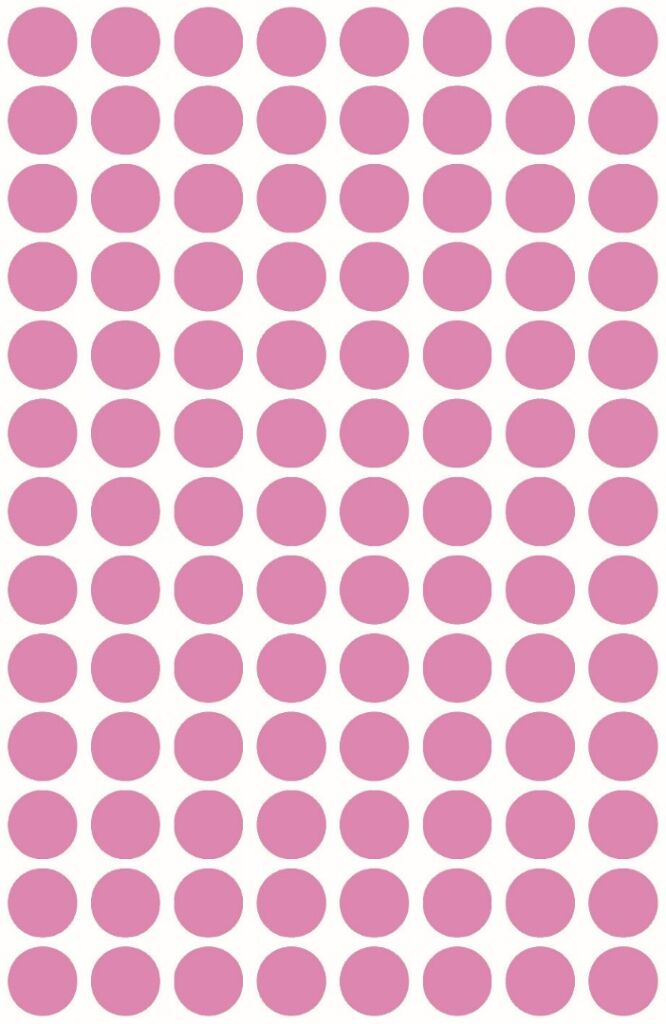 průměr 8 mm, 416 ks etiket v balení, papírové, permanentní lepidlo, barva růžová.