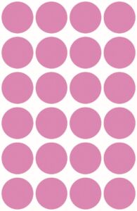 průměr 18 mm, 96 ks etiket v balení, papírové, permanentní lepidlo, barva růžová.
