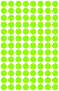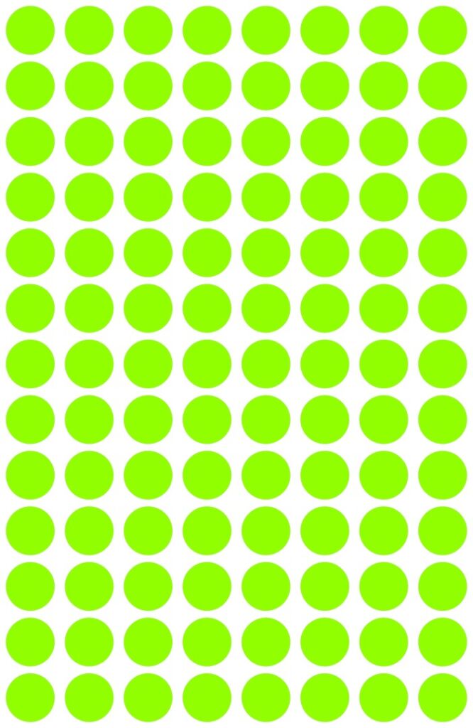 průměr 8 mm, 416 ks etiket v balení, papírové, permanentní lepidlo, barva neonově zelená.