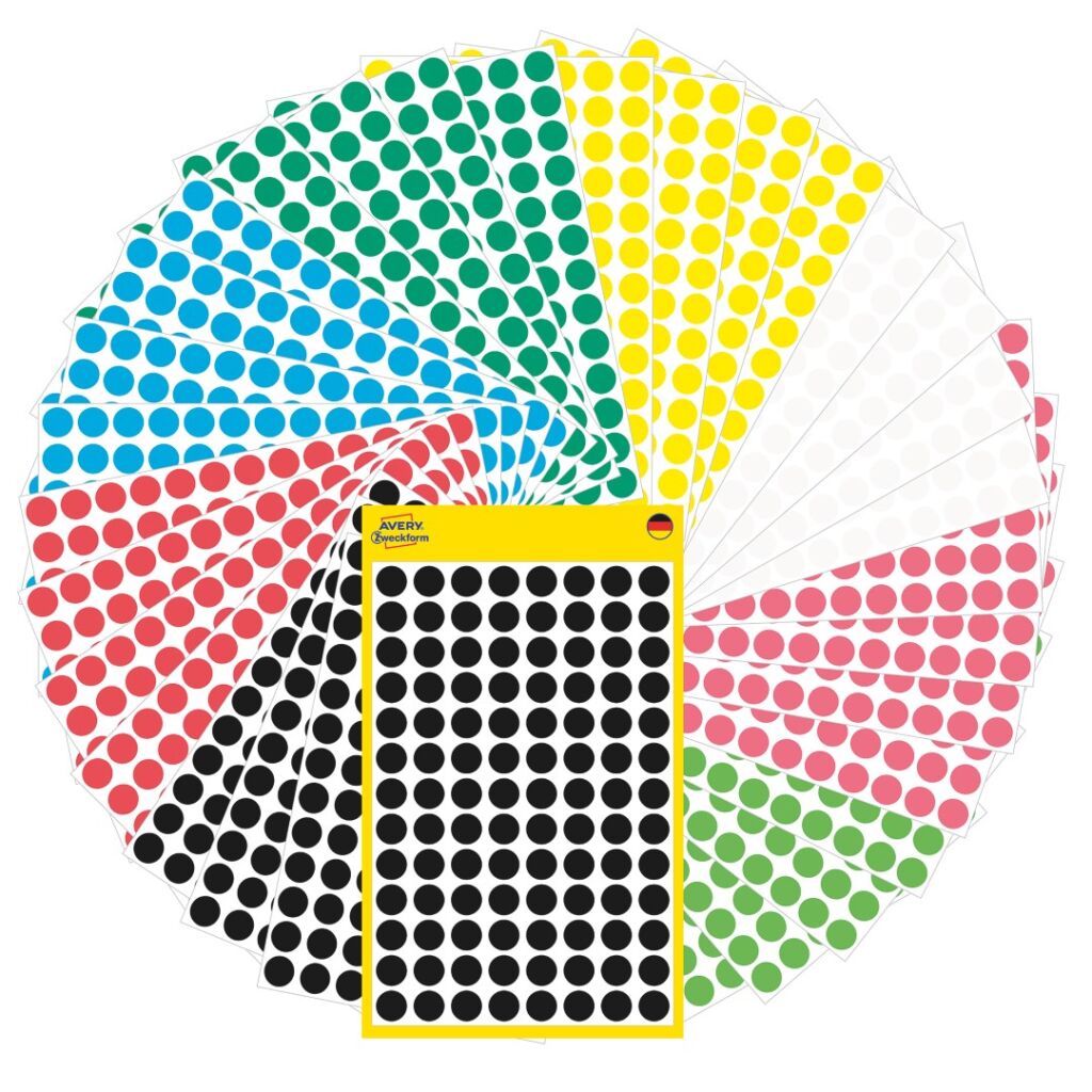 Samolepící kolečka Avery Zweckform 59994 na jednoduché, rychlé a poutavé označování, plánování, archivaci, organizaci, inventarizaci atd. Skvěle se hodí například pro plánování rozvrhů, směn nebo dovolených, označování konkrétních výrobků či dokumentů, kontrolu kvality nebo inventarizaci apod. Jsou okamžitě viditelné a umožňují tak jasný a jednoduchý přehled. Za pomoci kulatých značkovacích etiket Vám půjde práce lépe od ruky. Spolehlivá lepivost na všech běžných typech povrchů. Sada barevných samolepek o průměru 8 mm Avery Zweckform 59994 je ideální pro rychlé a snadné použití v kanceláři, obchodě nebo domácnosti, lze je také popsat ručně, nejsou však vhodné pro potisk v tiskárnách. Kulaté samolepící etikety nabízíme v mnoha různých barevných i velikostních variantách pro velmi flexibilní použití.