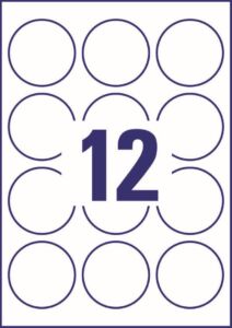 25 archů A4, kolečka průměr 60 mm, 300 ks etiket v balení, papírové, snímatelné lepidlo, barva bílá. Typ tiskárny: černobílá laserová, barevná laserová, inkoustová.