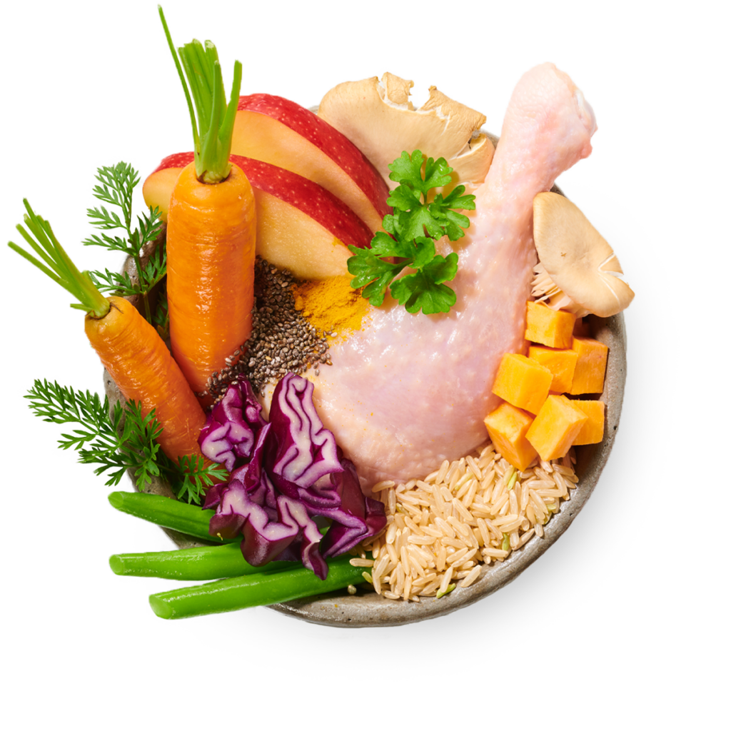 Naše skutečné celé ingredience pocházejí od místních dodavatelů, kteří sdílejí naše hodnoty. Jídla se vaří na objednávku v naší kuchyni schválené veterinární správou jen několik hodin před příjezdem k vašim dveřím.