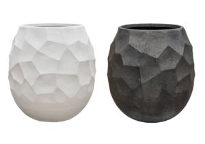 Květináč Baq z kolekce Polystone je vyroben z polystone, směsi syntetického a mletého vápence. Tento materiál má stejné vizuální vlastnosti jako přírodní kámen, ale vyniká svou překvapivě nízkou hmotností. Květináč má žebrovanou strukturu a matný povrch, což mu dodává moderní vzhled. Tento produkt je vhodný pouze pro vnitřní použití.