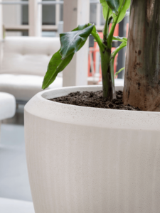 Květináč Baq z kolekce Polystone je vyroben z polystone, směsi syntetického a mletého vápence. Tento materiál má stejné vizuální vlastnosti jako přírodní kámen, ale vyniká svou překvapivě nízkou hmotností. Květináč má žebrovanou strukturu a matný povrch, což mu dodává moderní vzhled. Tento produkt je vhodný pouze pro vnitřní použití.