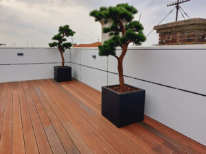 Sklolaminátový květináč pro vnitřní i venkovní použití.