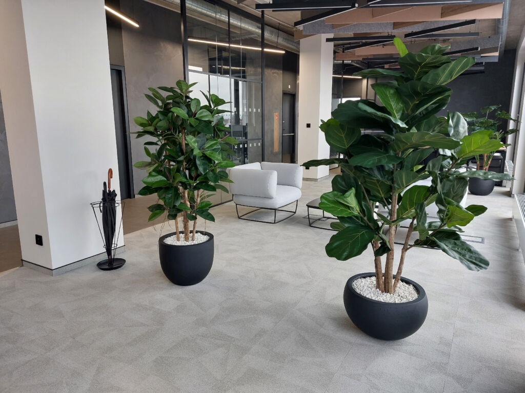Sklolaminátový květináč pro vnitřní i venkovní použití.