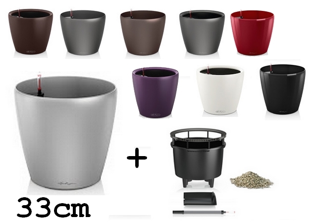 Samozavlažovací květináč Lechuza Classico 33 patří mezi střední květináče klasického nízkého tvaru s kulatým profilem. K dispozici v řadě lesklých a matných odstínů. Komplet obsahuje květináč, vyjímatelnou sázecí vložku a samozavlažovací set se sáčkem Lechuza PON na drenážní vrstvu.