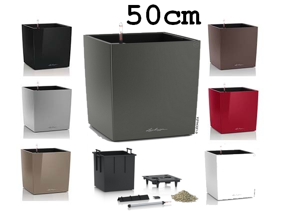 Samozavlažovací květináč Lechuza Cubico 50 patří mezi velké květináče krychlového tvaru. K dispozici v řadě lesklých a matných odstínů. Komplet obsahuje květináč, vyjímatelnou sázecí vložku a samozavlažovací set se sáčkem Lechuza PON na drenážní vrstvu.