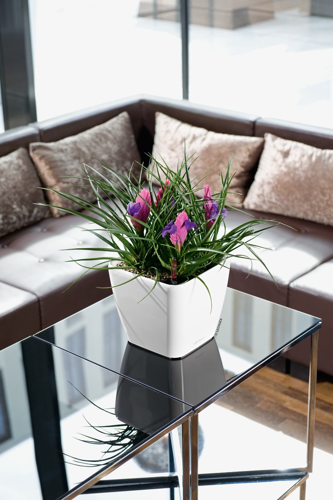 Samozavlažovací květináč Lechuza Quadro patří mezi menší květináče klasického nízkého tvaru se čtvercovým profilem. K dispozici v řadě lesklých a matných odstínů. Komplet obsahuje květináč, vyjímatelnou sázecí vložku, ozdobný krycí rámeček a samozavlažovací set se sáčkem Lechuza PON na drenážní vrstvu.