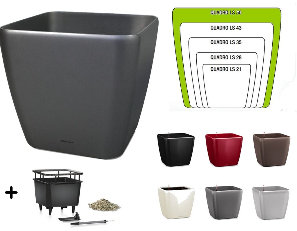 Samozavlažovací květináč Lechuza Quadro 50 patří mezi velké květináče klasického nízkého tvaru se čtvercovým profilem. K dispozici v řadě lesklých a matných odstínů. Komplet obsahuje květináč, vyjímatelnou sázecí vložku, ozdobný krycí rámeček a samozavlažovací set se sáčkem Lechuza PON na drenážní vrstvu.