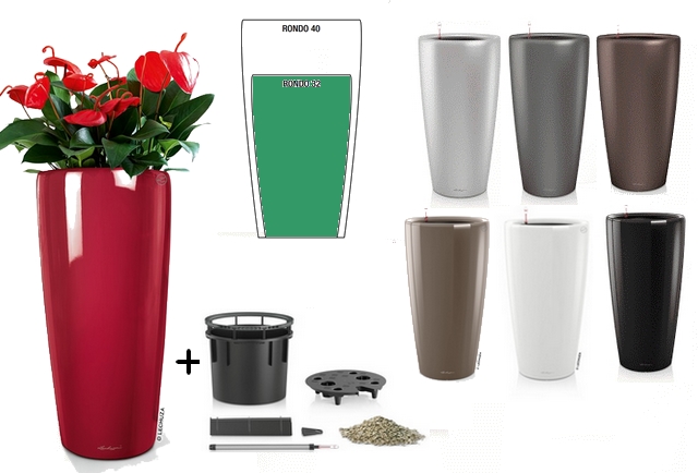 Samozavlažovací květináč Lechuza Rondo 32 je středně velký květináč sloupovitého tvaru s kulatým profilem. K dispozici v několika barevných odstínech. Komplet obsahuje květináč, vyjímatelnou sázecí vložku, ozdobný krycí rámeček a samozavlažovací set se sáčkem Lechuza PON na drenážní vrstvu.