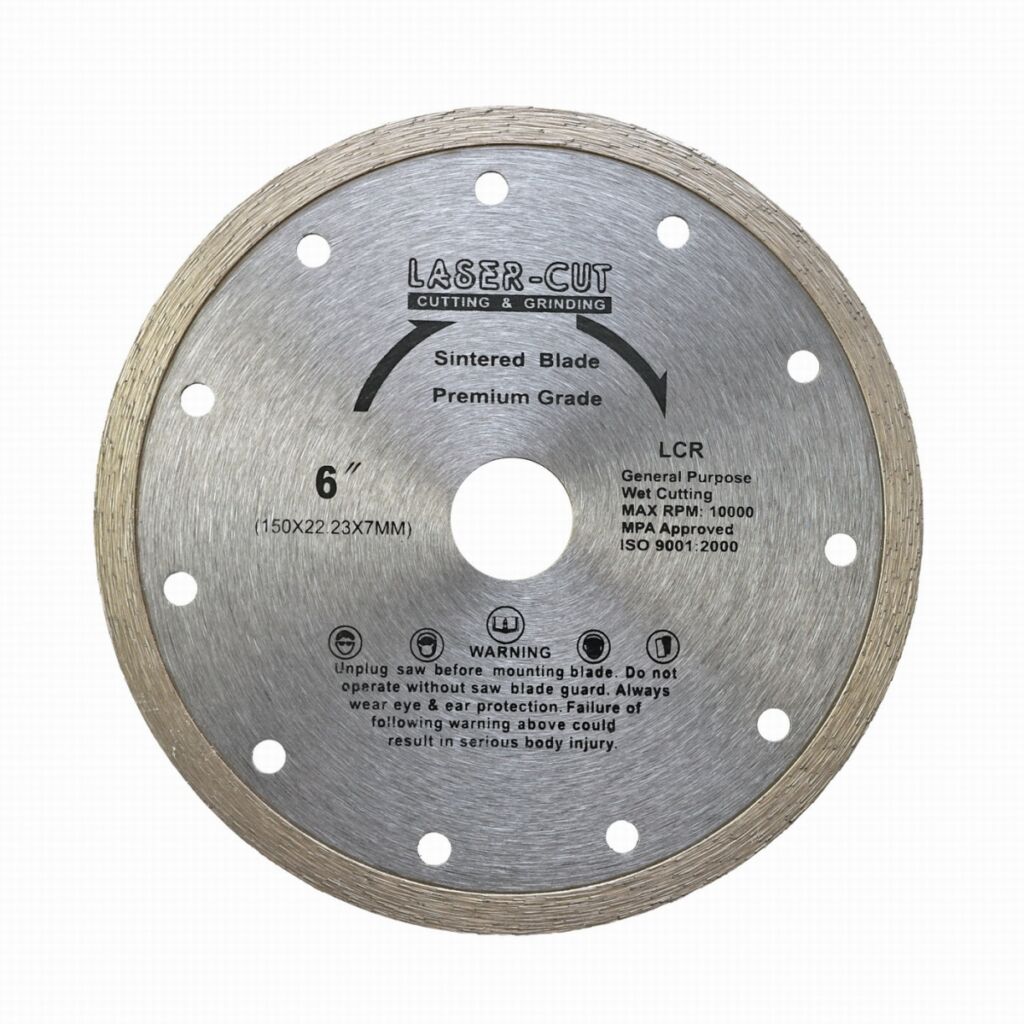 Diamantový kotouč celoobvodový 150 x 22,23 x 7mm LCR. Tyto kotouče poskytují hladký a přesný řez.Ideální pro řezání keramických obkladů, dlažeb, mramoru a porcelánu.Doporučení chladit, Průměr kotouče - 150 mm, Výška segmentu - 7 mm, Upínací otvor - 22,23 mm, Řezný typ - celoobvodový...