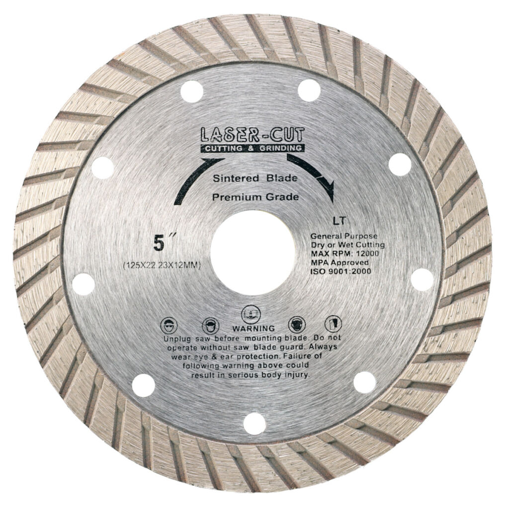 Tyto prémiové univerzální kotouče s extra vysokým segmentem poskytují hladký a přesný řez.Turbo ostří má dobré chladící vlastnosti a dobře odvádí řezaný materiál.Ideální pro řezání betonu, cihly, břidlice, ale i keramiky. Doporučení chladit vodou