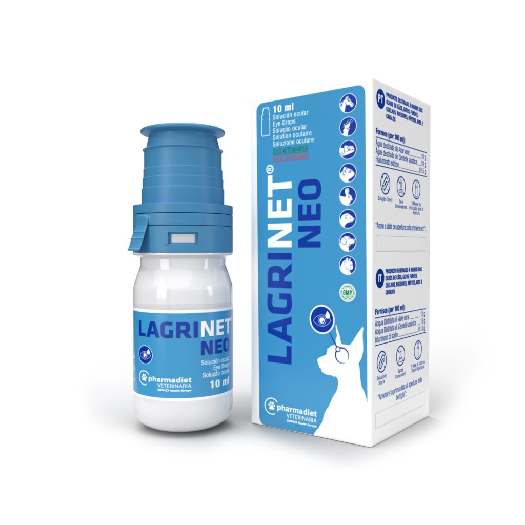 Kapky Lagrinet® Neo pro psy a kočky vytváří přes oči film na ochranu před alergeny, prachem a nečistotami. Slouží pro ošetření suchých očí, jako “umělé slzy” v případě snížené produkce slz a doplňková léčba vředů na rohovce. Doporučené dávkování naleznete v příbalovém letáku.
